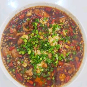 先炒豆瓣酱,炒好了加水,配菜煮好,捞出放碗里。记到放盐