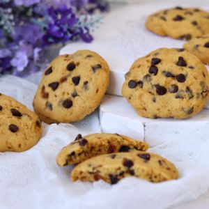 用勺子随意整形放在垫了油纸的烤盘上,表面放巧克力豆做装饰