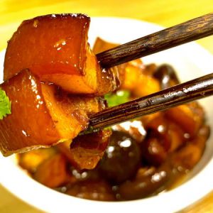 炒出糖色,下五花肉煸炒一下,使糖色均匀的挂在五花肉上。