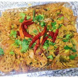 材料放进去一起均匀翻炒,这一步能可以慢慢一点点弄 我一次性弄太多,锅幸好大点不然都满出来了。放点水 煮熟,这个时候试下汤底 看看要不要加点火锅底料啊什么其他的配料。