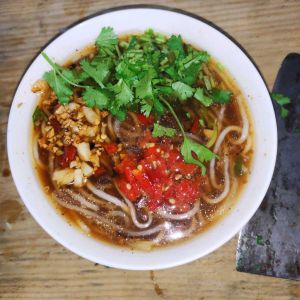 铺上香菜,剁椒酱(可额外增加花生,肉末等食材丰富)