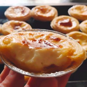 把步骤1的蛋挞液倒在蛋挞皮中,九分满