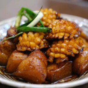 然后加水没过肉块在加生抽老抽料酒与盐。大火煮开后转小火炖40分钟左右