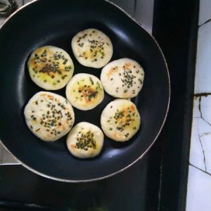4勺面粉,放点油揉成面团,死面什么也没放。