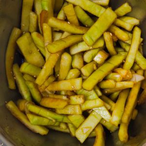 西瓜皮去皮,洗干净,切成条状。然后放入葱花,香菜,海鲜酱油,盐,鸡精,香油,耗油,芝麻(放不放都可以),如果喜欢吃辣的朋友可以加一点辣椒油。