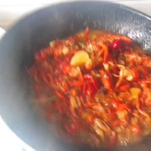 游烧热以后把生姜八角小米辣炒香以后倒入龙虾翻炒。颜色是不是很漂亮