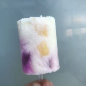 也可以用小杯酸奶做噢,上面插上签,或者吸管,都可以。放入冰箱冷冻。