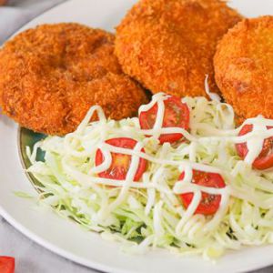 将土豆饼一次裹上面粉、蛋液、面包糠