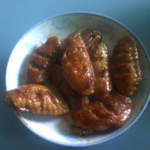 水分快干时把鸡翅夹出来,也可以把汤汁淋上面