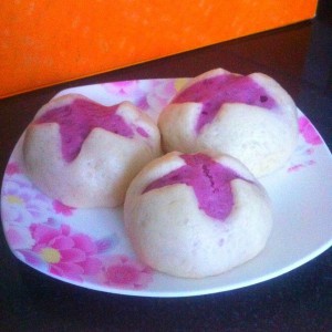 熟紫薯去皮压成泥加入面粉,酵母,牛奶,白糖,清水揉成光滑面团
