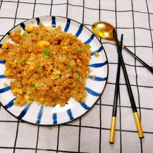 放入油,加入拌好的米饭,翻炒后放入鸡蛋