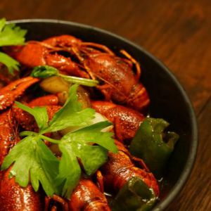 分批放入小龙虾并翻炒(不可一次倒入大量小龙虾,油会溅出造成安全隐患,同时适量龙虾方便翻炒)