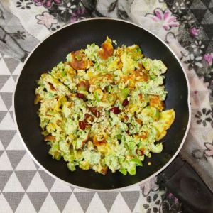 鸡蛋打散不要打发,挤入2片柠檬汁。