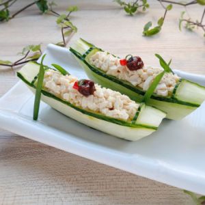 最后点缀一块大块菇酱里的菇粒,搭配点葱花红椒,用小葱当船桨,就完成了!如果还没吃,可以放冰箱冷藏,风味更佳!