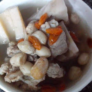 姜切片 花生洗干净后 将所有的材料放进紫砂锅里 加凉水 煲大概一下午 如果是家里的压力锅或者电饭煲的话 煲大概两个小时就好 煲到莲藕是那种糯糯的 咬起来藕断丝连那种 出锅前十分钟加上盐和枸杞 就ok啦~