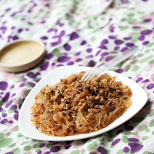 粉丝用水泡软 肉末里放一点木耳碎、胡萝卜碎 用葱、姜、黄酒、生抽拌好待用