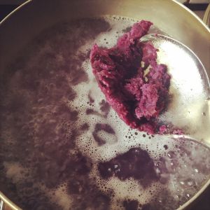 煮一煮,接触到柠檬的地方已经开始还原成粉紫色了,然后慢慢的就都成了粉紫色~