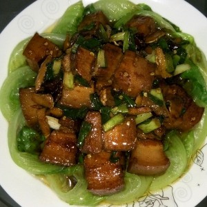 盘中放入几片清水煮过的生菜,将烧好的肉放入盘中即可(生菜是为了吸走过多的油,避免过于油腻,最后生菜还可以吃)。
