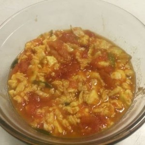 鸡蛋打开备用(加少量凉水,这样炒出来的鸡蛋比较嫩)