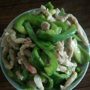瘦肉切丝 放黄酒一勺 盐二勺 淀粉三勺拌匀 备用(30分钟)