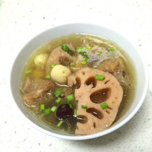 把排骨,藕,莲子,红枣几颗,姜三四片,胡椒粉少量,放入高压锅,再加水,水的话大家自己看着办吧至少得盖过食材咯,当然也不能太多不然会爆出来的