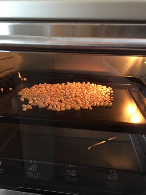 松子在150度下烤7/8分钟。香味出来就OK。