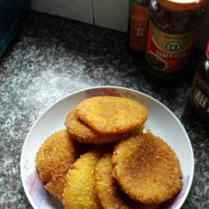 然后捏一小团揉圆压扁,大小看个人喜好,拿一个大碟装入一些面包糠,把面团两面都在面包糠里稍微用力摁下,让两面都沾满面包糠,起锅大火烧油,油开后放入南瓜饼转小火炸,记住一定要小火,不然容易糊,小火可以炸久点,两面金黄即可出锅了。我儿子可爱吃了,你还在犹豫啥,快点动手吧!犹豫要带两个小孩,就没时间拍那么详细的图片了。但这每一个菜绝对出自本人之手,如果有不懂的地方,可以留言。一定回复!