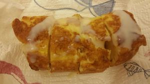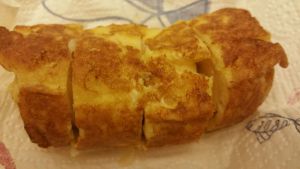 打一只鸡蛋,搅拌均匀,将包裹好的香蕉面包卷均匀的裹上蛋液