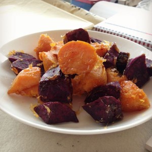 关火并将炸好的地瓜倒进锅里,翻炒一下就可以起锅。