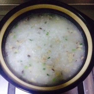 待米煮成8分熟 将鸡肉香菇倒入 煮熟即可