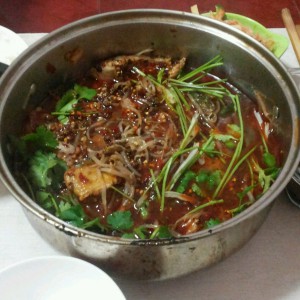3:把最小袋的调料有热油炸好倒入做好的鱼中。OK!大功告成川味浓浓哦!