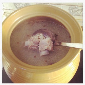 炖汤锅烧水,拍两块姜、撒几颗花椒,不会麻还很香,烧开后下排骨,再次烧开后下洗干净的豆子,大火十分钟,把漂浮在水面的泡子全打干净,关小火炖,根据自己的口感,我小火也炖了2个小时…关火前入盐,我喝汤偏清淡,一锅汤放了两小勺…