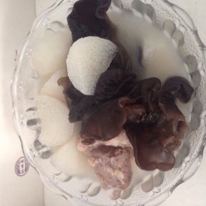 加入设成小块的山药个木耳炖半小时到四十分钟左右根据口味加入盐即可出锅!