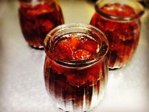玻璃器皿放在沸水里煮一下消毒晾干,把果酱趁热装瓶,盖好盖子倒扣晾凉,放入冰箱冷藏保存!果肉多多又美味的草莓果酱就做好啦~