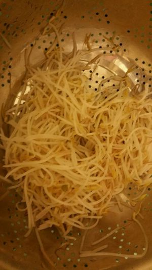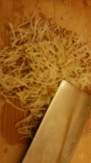 将焯过水的豆芽稍微切一下,这是怕吃的时候豆芽太长不好咬断。