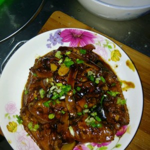 倒入300毫升可乐和适量的酱油生抽。多少由个人口味来定。中火煮至汤汁粘稠(也就是大厨所说的收汁)煮的时候需盖上锅盖焖。