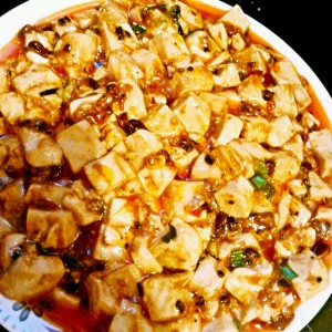 青蒜、生姜、大蒜、干辣椒切细末,花椒放锅中,小火炒香,冷后压成花椒末。豆豉、豆瓣酱剁碎。将豆腐切成2厘米见方的块,放入加了少许盐的沸水中汆一下,去除豆腥味,捞出用白开水浸泡。