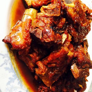 糖熬好后把排骨倒进去,裹匀糖色,倒入酱油,上色。