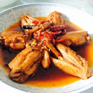放入干红辣椒,食用盐,水烧开以后可以尝试一下咸淡,在酌量添加,期间用小火,鸡翅才会入嘴脱骨