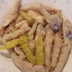 用我们家自己腌制的泡菜汤一大碗,加一勺盐、一勺味精、将煮好的鸡爪切开浸泡到泡菜汤里,再放入几个泡好的青辣椒,或者用超市买来的瓶装或袋装的泡椒浸泡一夜即可。