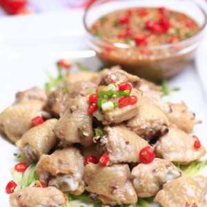 鸡翅取出,码放在黄瓜条上,把拌匀的调味汁浇在上面,可放入冰箱冷藏后再食用。