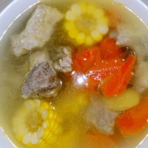 排骨炖了30分钟放玉米跟醋、盐、和少许料酒,在顿15分钟放入胡萝卜和大葱,在顿15分钟放入鸡精起锅。