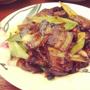 捞出肉片,放入豆豉、蒜瓣、大葱、郫县豆瓣酱、花椒开中火煸出香味.