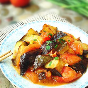 茄子洗净切块,表面撒少许玉米淀粉拌匀。