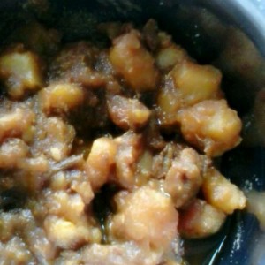 等锅里汤快干再加水土豆,在小火炖会,土豆熟就可以出锅了。这时汤很少呈粘稠状。可以根据自己口味加入香菜。