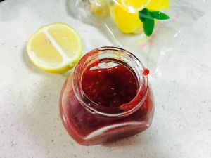 挤入半个柠檬汁,口感立马提升,关火,待草莓酱不太烫时候可调入适量蜂蜜