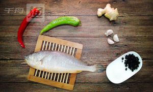 原料处理:黄花鱼去鳞、除去内脏和鱼鳃,切上花刀,放入食盐稍微腌制;