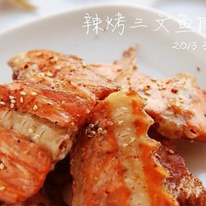 烘烤30分钟后取出,翻面,撒上辣椒粉和白芝麻,继续烘烤10分钟,鱼油都析出,并且鱼骨边缘呈焦黄状态即可出炉。