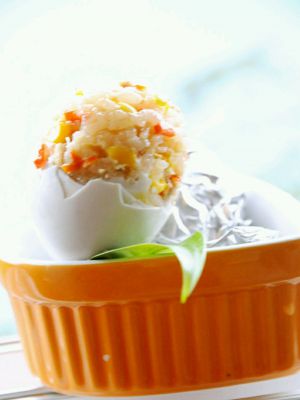 制作糯米蛋的材料:生咸鸭蛋、糯米、胡萝卜、甜玉米、豌豆、盐、玉米油(调和油)、蚝油、姜米。