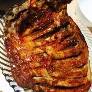 羊排洗净,用刀顺着肋尖滑透。用盐和料酒混合在一起均匀涂抹在每个部位。腌制最少8小时。